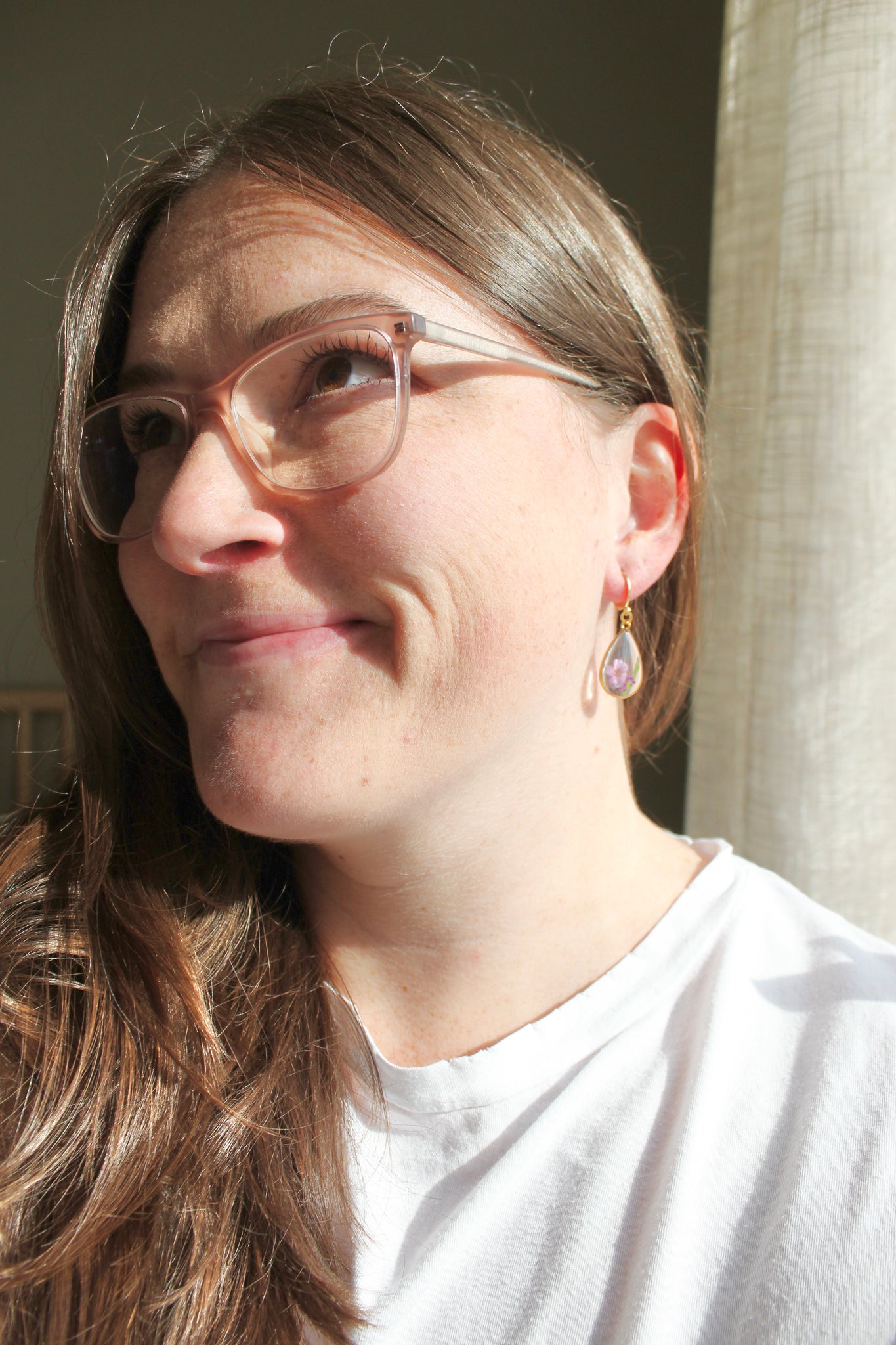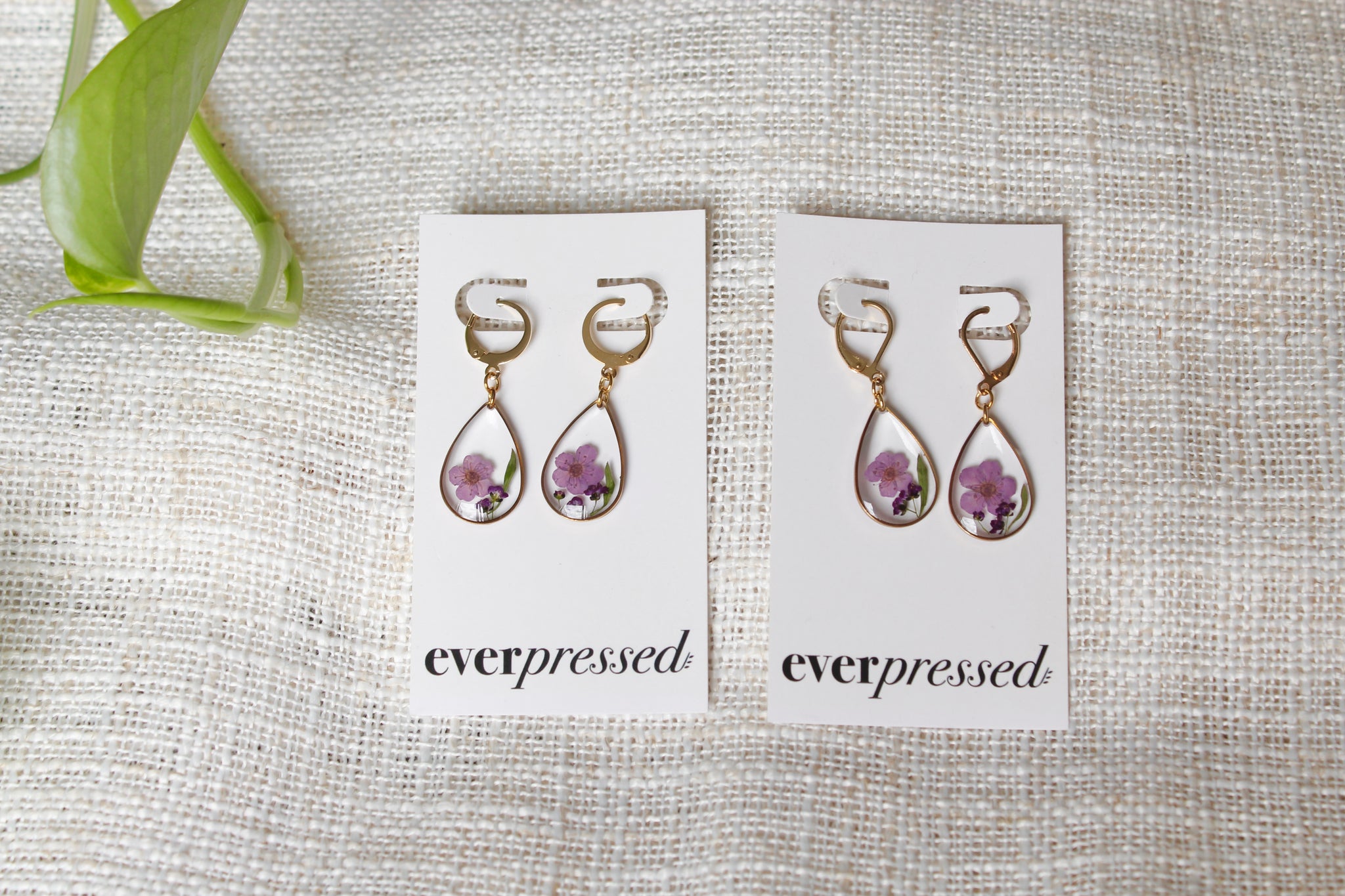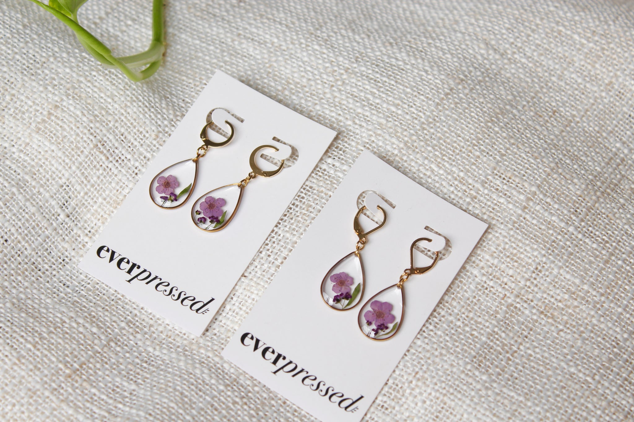 Handmade one at a time from my home studio in Alberta with real narcissus and alyssum flowers. Inspired by the simplicity and symmetry of nature. Lightweight and perfect for everyday wear.