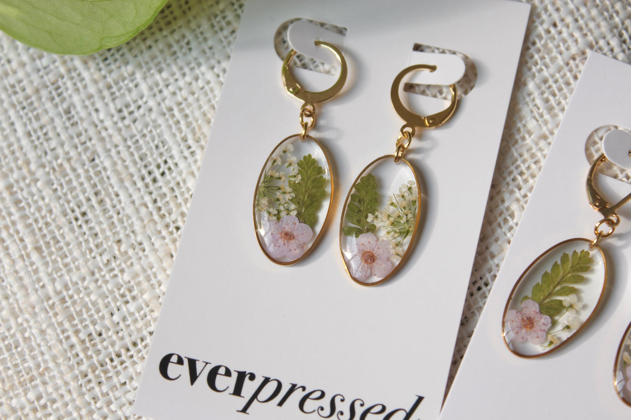 Handmade one at a time from my home studio in Alberta with real narcissus and fern leaves. Inspired by the simplicity and symmetry of nature. Lightweight and perfect for everyday wear.