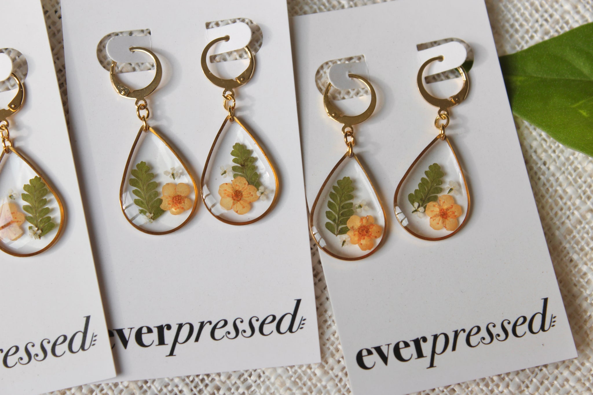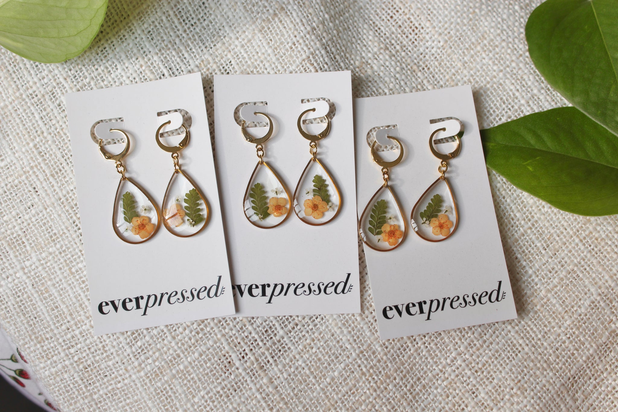 Handmade one at a time from my home studio in Alberta with real narcissus and fern leaves. Inspired by the simplicity and symmetry of nature. Lightweight and perfect for everyday wear.
