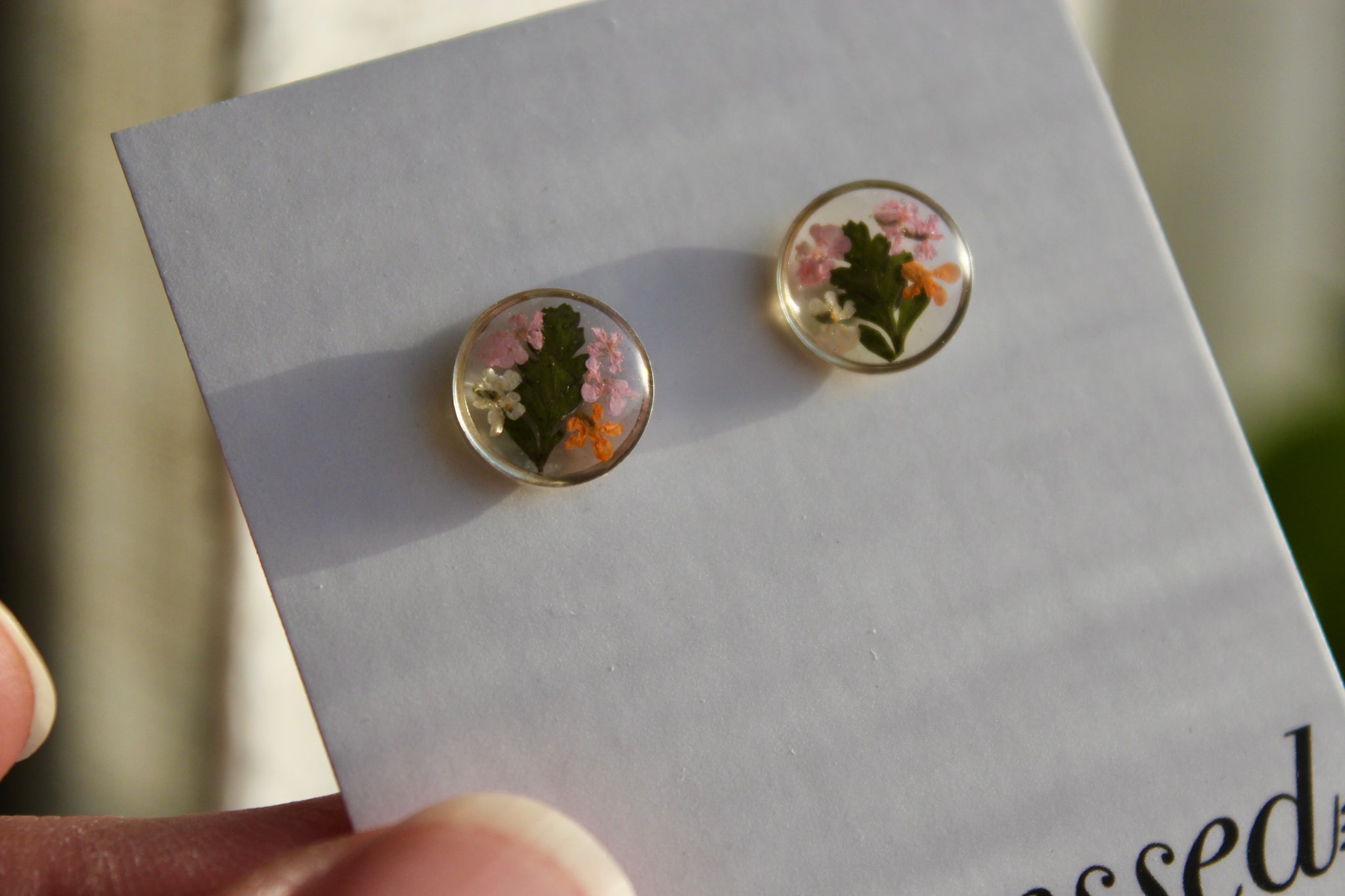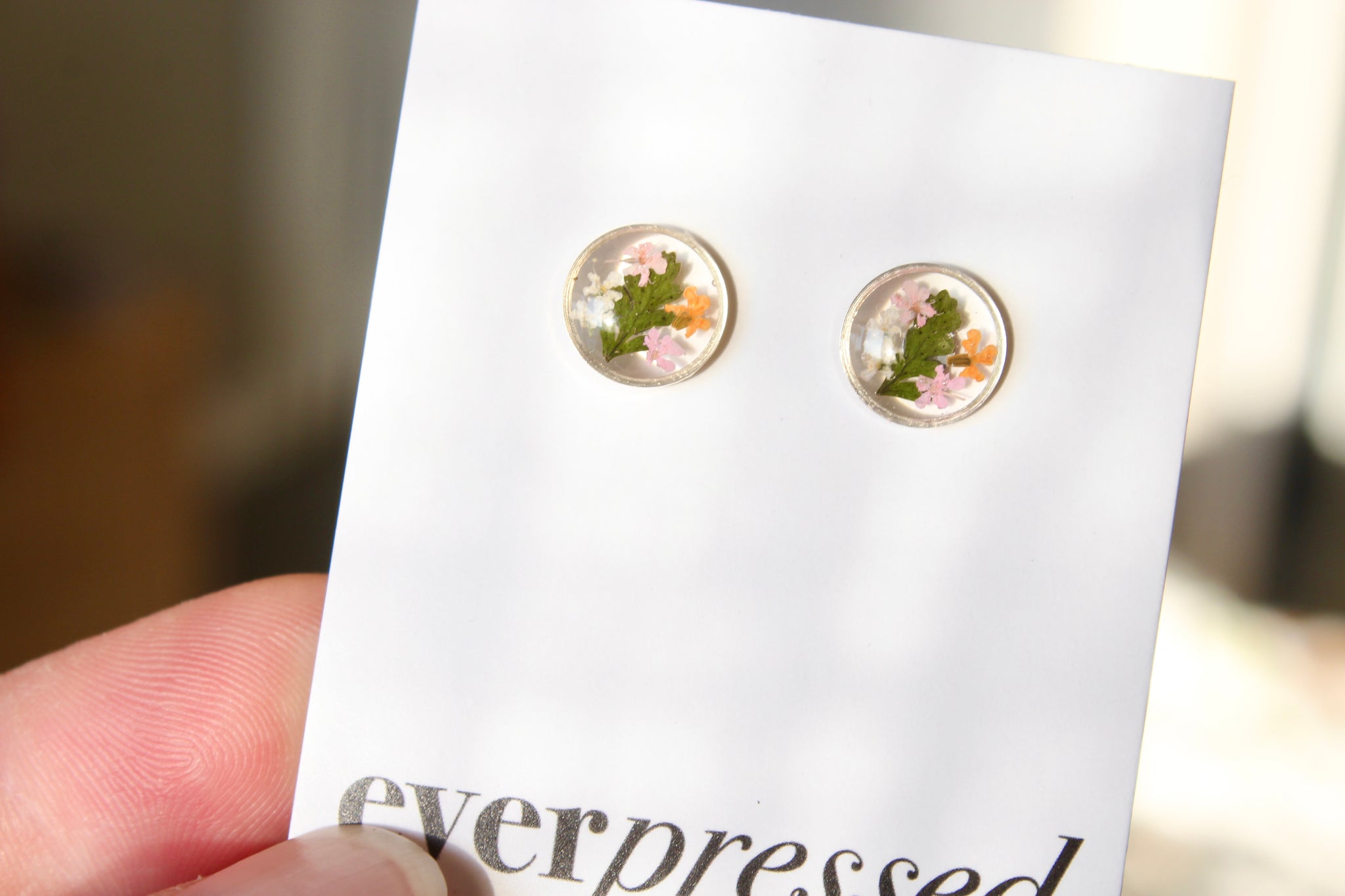 Handmade one at a time from my home studio in Alberta with real Queen Anne's Lace flowers. Inspired by the simplicity and symmetry of nature. Lightweight and this vibrant pink flower is perfect to add colour to your everyday outfit.