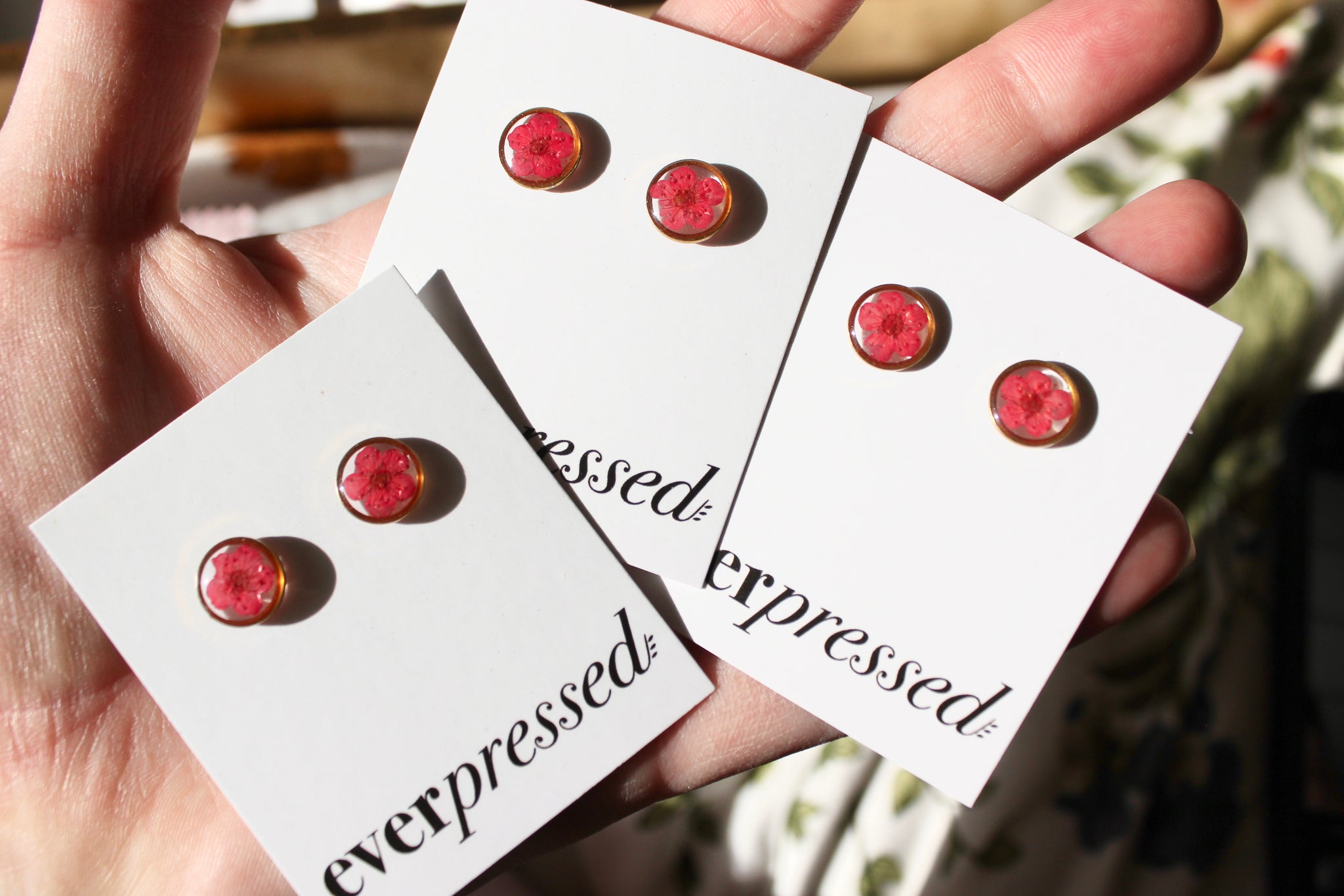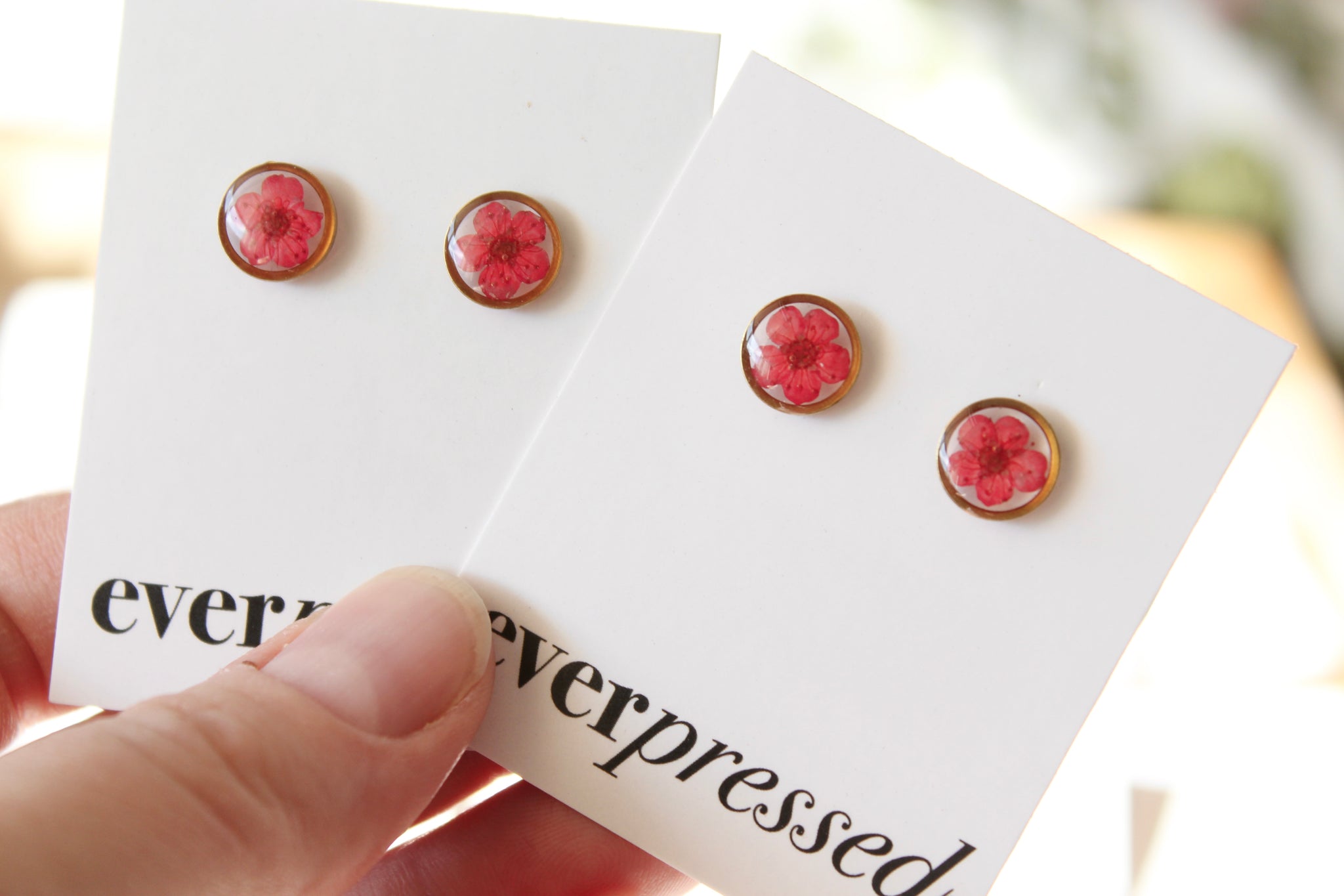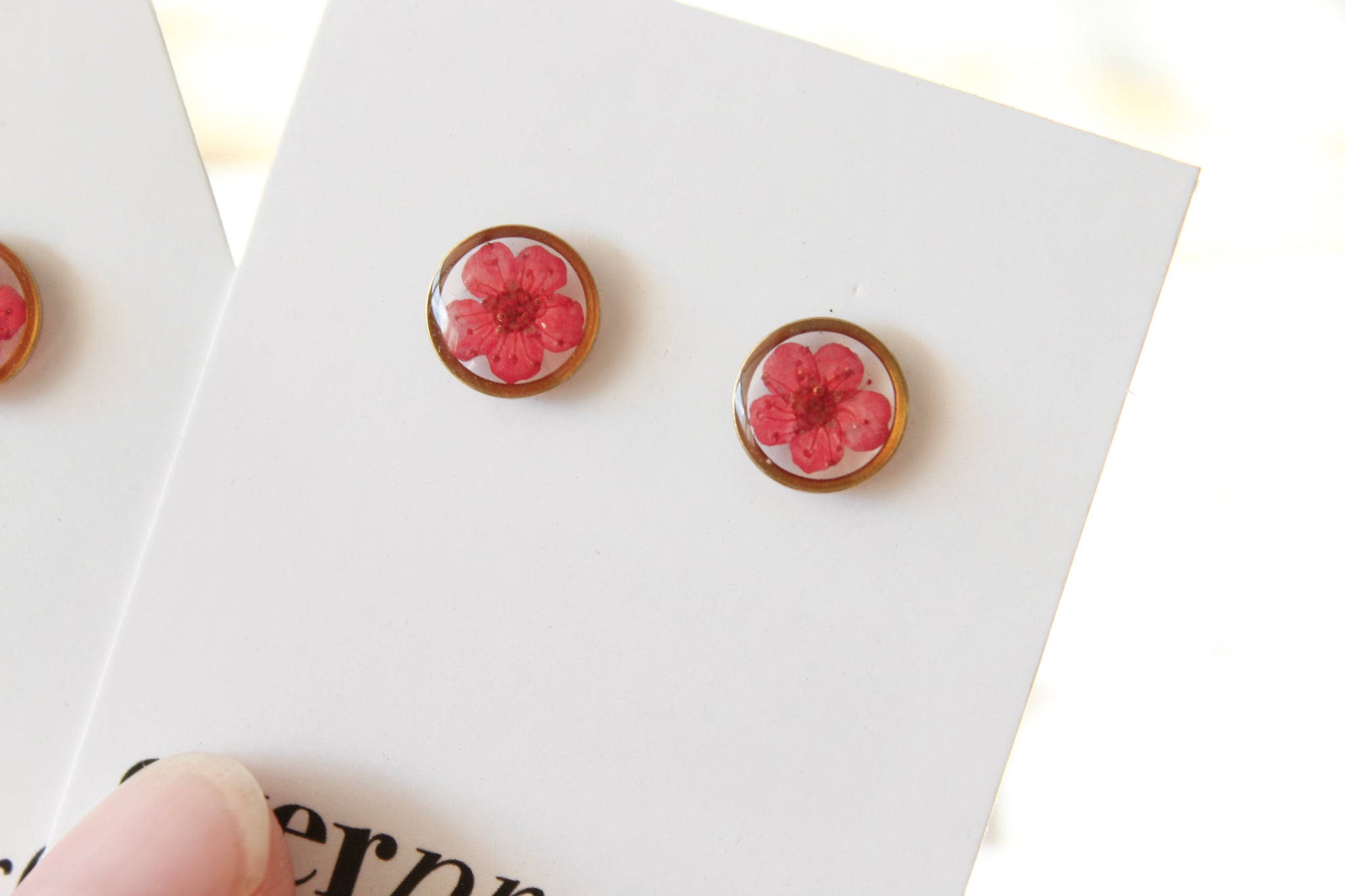 Handmade one at a time from my home studio in Alberta with real narcissus flowers. Inspired by the simplicity and symmetry of nature. Lightweight and perfect for everyday wear.