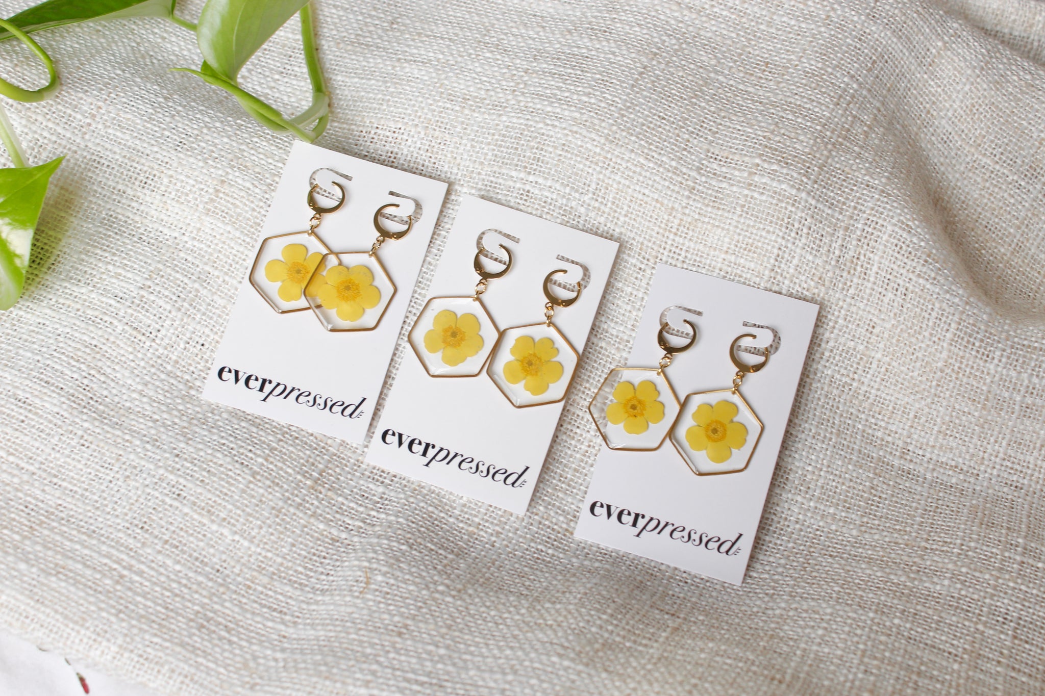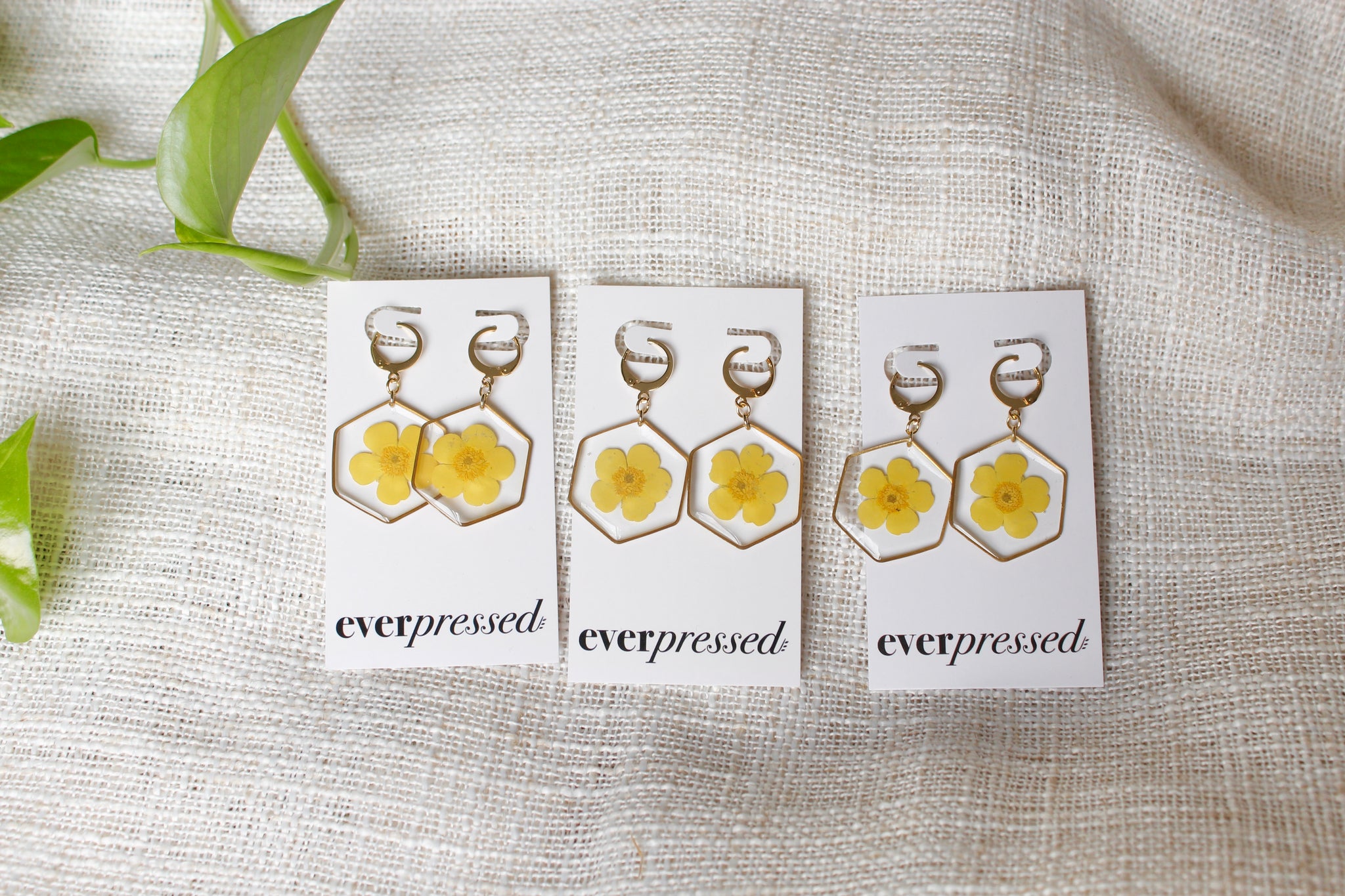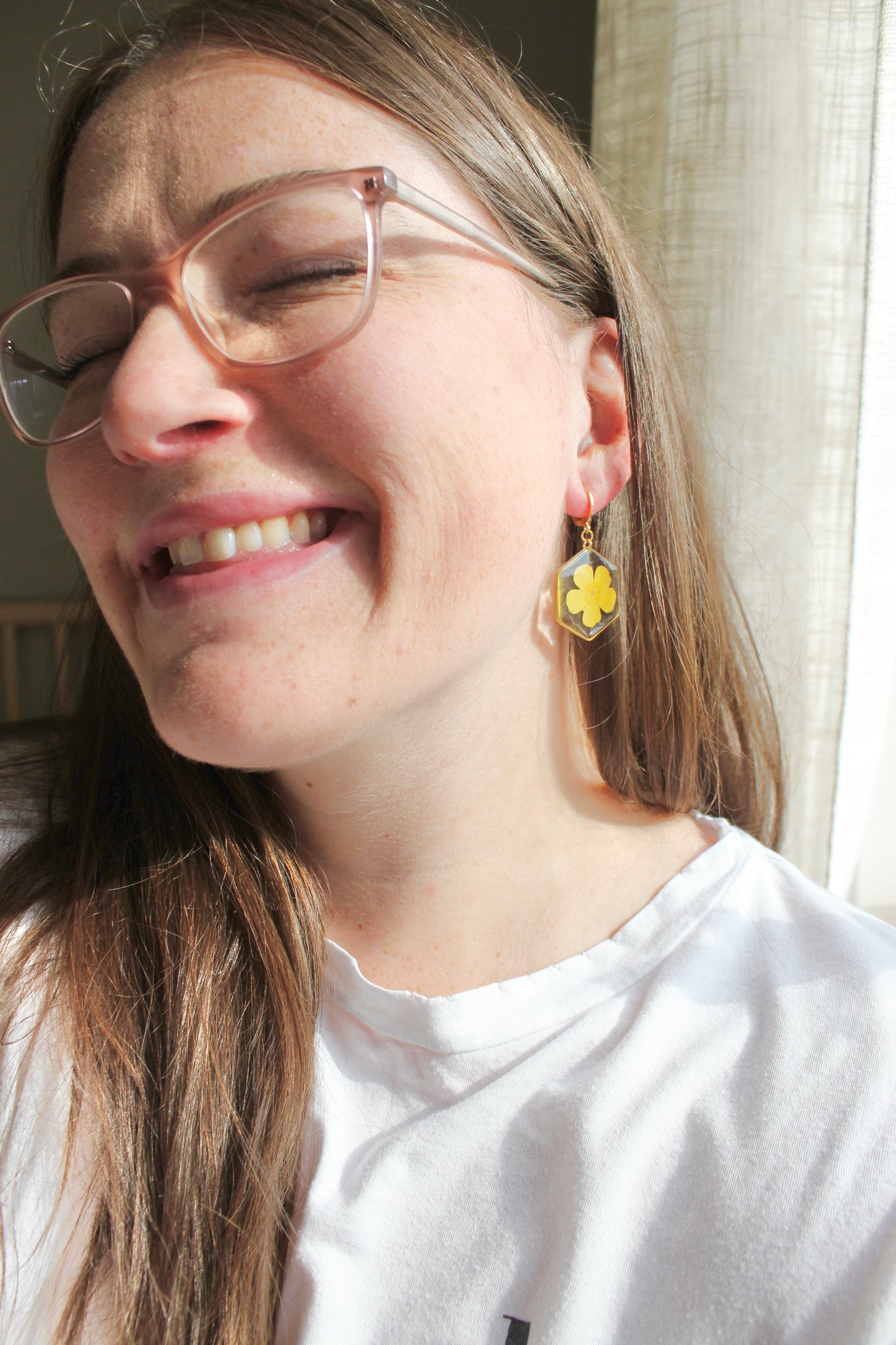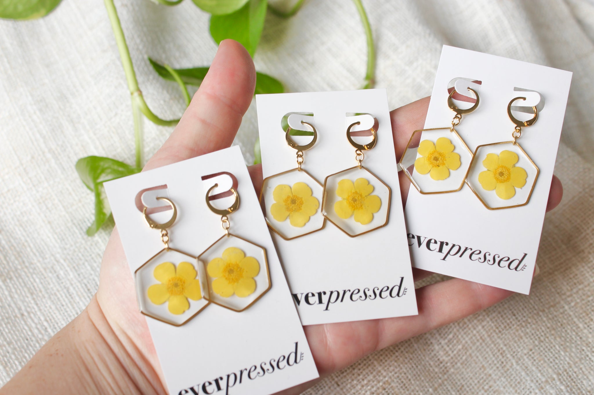 Handmade one at a time from my home studio in Alberta with real buttercup flowers. Inspired by the simplicity and symmetry of nature. Lightweight and perfect for everyday wear.