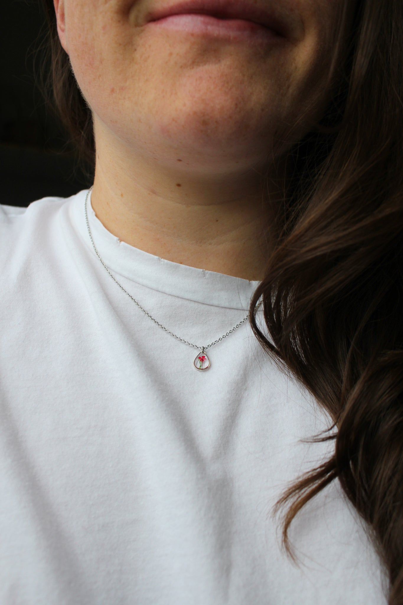 Handmade one at a time from my home studio in Alberta with tiny queen anne's lace flowers. Inspired by the simplicity of nature. This necklace is super lightweight, perfect for everyday wear and the dainty flower add an element of interest to any outfit.